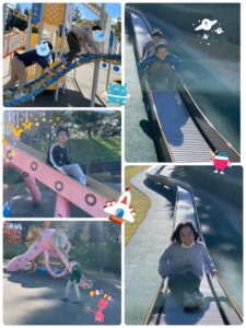 公園ではブランコやターザンロープなどで楽しく体を動かしていました。