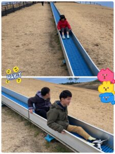 公園ではローラー滑り台やブランコ、複合遊具で体を動かしていました。