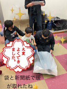 もし災害でライフラインが途絶した場合に、どのように寒さをしのぐかを学びました👍