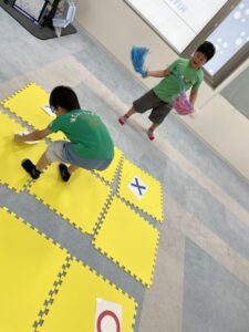 HIYOKO MUSIC 栗生教室では、このマルバツゲームを大きいプレイマットの上で行いました!それはもう、大盛り上がりです。