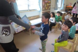 今年度初めてのお誕生会でしたが、主役のお友だちは、みんなからの質問に一生懸命お話してくれました