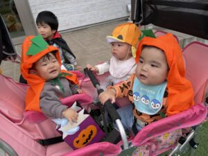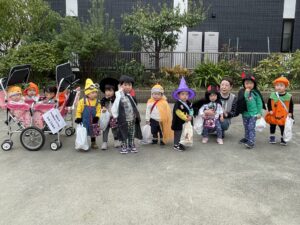 今日はハロウィン🎃子どもたちは可愛いカボチャや魔女、吸血鬼🧛♀️、コウモリ、お化けになってパレードしましたよ😊