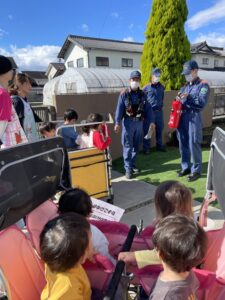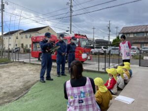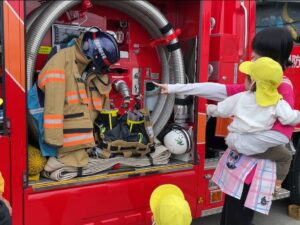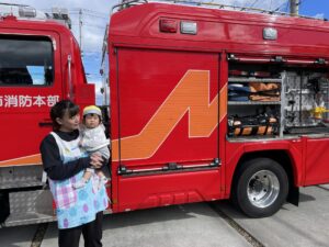 消防署の方からお話を聞いた後は消防車🚒と一緒に写真を撮ったり、
