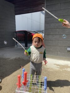 園庭でお砂やシャボン玉遊び