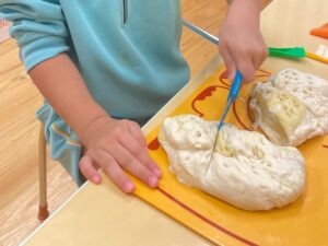今回の活動では、小麦粉粘土で遊びましたよ。